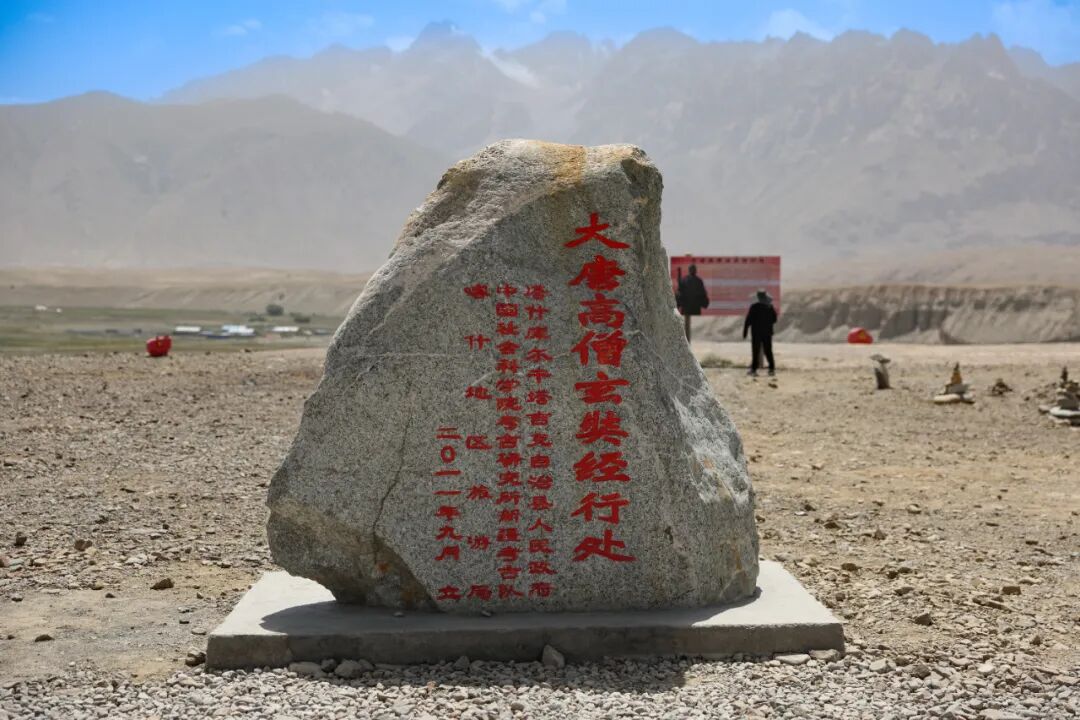 在瓦罕走廊的观景台,一块石头上刻有“大唐高僧玄奘经行处”。