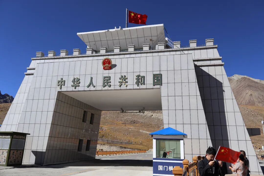 红其拉甫国门立在海拔5100米的雪山之间,被称为“世界之巅的国门”。