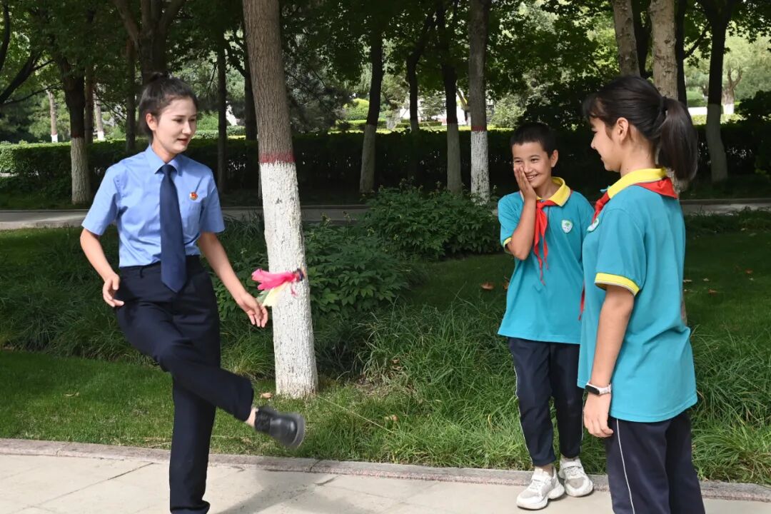 8月13日,在新疆维吾尔自治区拜城县检察院的院子里,“检察官妈妈”和来自康其镇墩艾日克村中心小学的孩子们,在欢声笑语中一起踢着毽子。阳光下的笑脸,传递着像亲人一样的关爱。