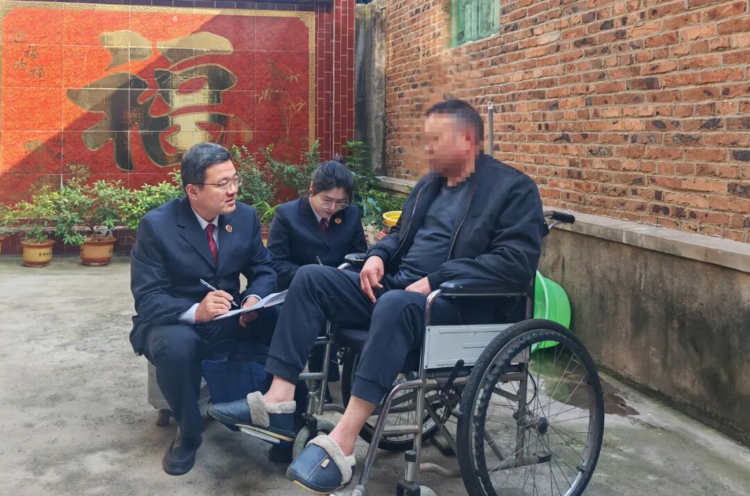 李某伍面色蜡黄,身形消瘦,深受直肠癌根治术后综合征、双肺感染性病变等多重疾病困扰,呼吸困难、行动不便,久坐后还双腿麻木。孙某德因车祸导致颈椎脊髓神经损伤,四肢肌无力,常年卧床全靠妻子照顾。孙某德妻子推着轮椅上的他和检察官交谈,夫妻俩言语间透着难以掩饰的疲惫。然而,比病痛更让他们心力交瘁的是另一个难题——经济上的困窘。