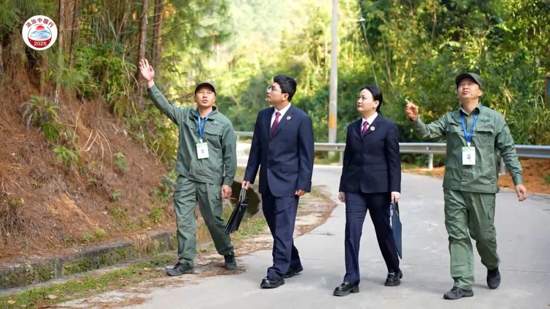 海南省琼中县检察院检察官与护林员在海南热带雨林国家公园黎母山片区查看桫椤保护情况。
