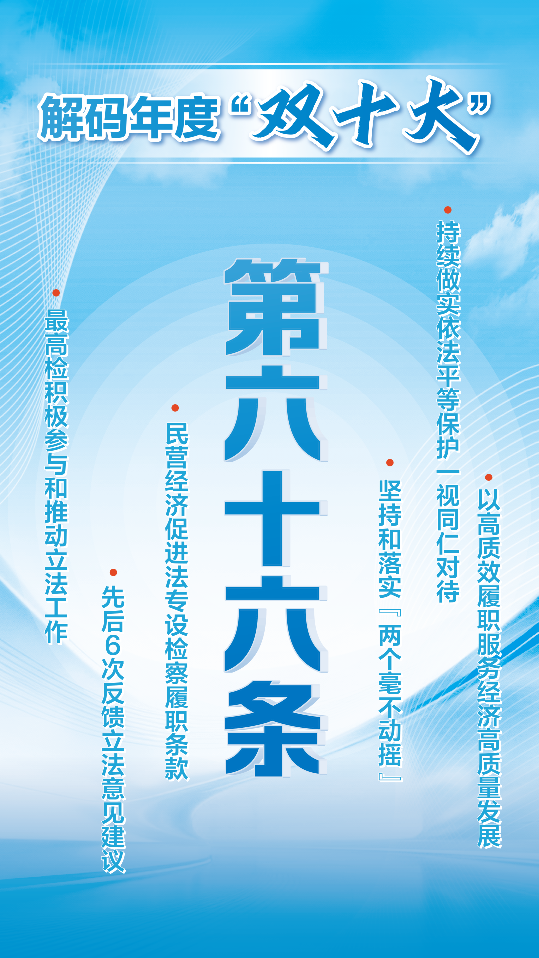 2025年4月30日,十四届全国人大常委会第十五次会议高票表决通过民营经济促进法,该法于当年5月20日起施行。其中,第66条对检察履职作出明确规定。